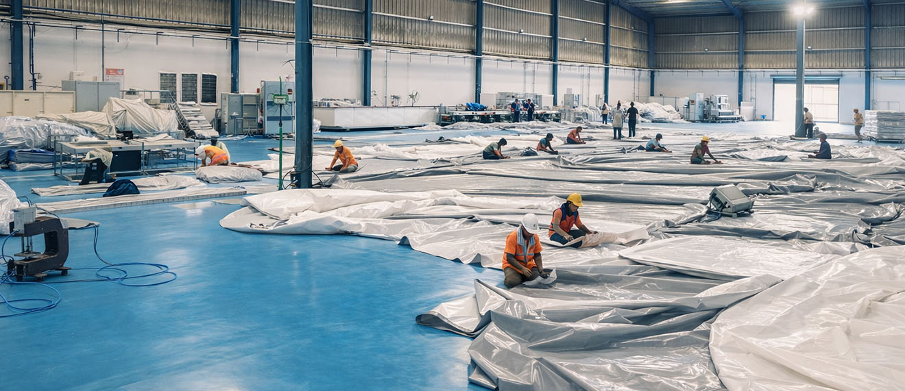 Fabrication is carried out using controlled welding processes such as Hot Air Welding or HF Welding to achieve strong, consistent, and reliable seams.